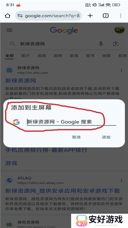 5.点击”添加”或者”确定”,网页就会成功添加到桌面。