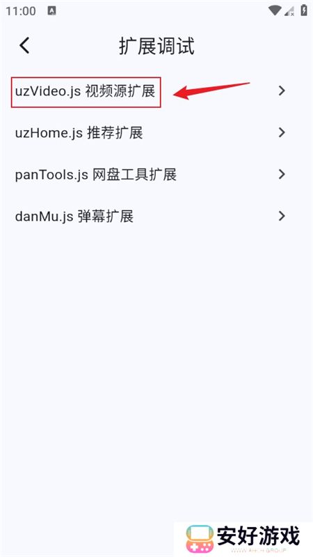 2、进入扩展调试页面后,这里有很多的扩展,比如我选择uzVideo.js 视频源扩展;