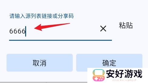5、在这里输入源列表链接或分享码,然后点击确定按钮(新手小白用户建议直接输入本站分享的分享码)