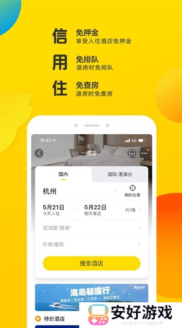 4.专享「信用住」酒店,免押金、免查房、免排队;