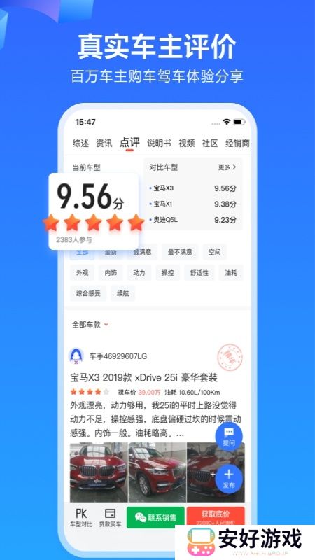 应用特色【车主成交价】3个月内真实车主成交价,100万车主参与汽车品牌覆盖率达89%