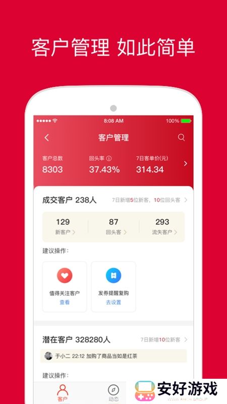 3、推广、拉新、转化、留存、促活、复购、裂变,膨胀券、礼品卡、会员储值、复购券、多人拼团、秒杀等玩法多多,帮你高效获客,提升转化率。