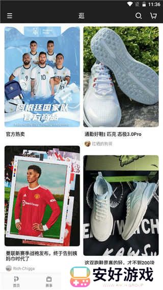 3、登录完成后,打开“逛”这个界面,里面有很多的商品信息,还有一些体育健身分享,可以关注很多的新鲜事情哦!