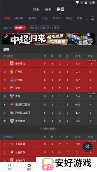 4、打开赛事里面的“数据”,还可以查看更多及时的赛事数据哦!