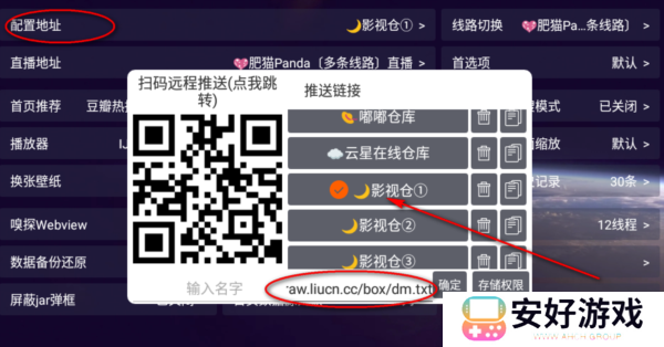 4、然后根据自己的需要来选择源,这里分享的是网上最全的一个接口地址,影视仓可自由选择任意线路。