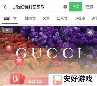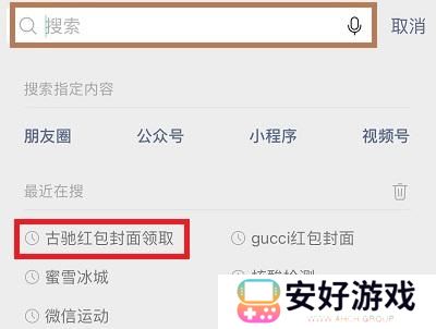 1、大家先进入微信,然后输入红包名,比如“古驰红包封面领取”。