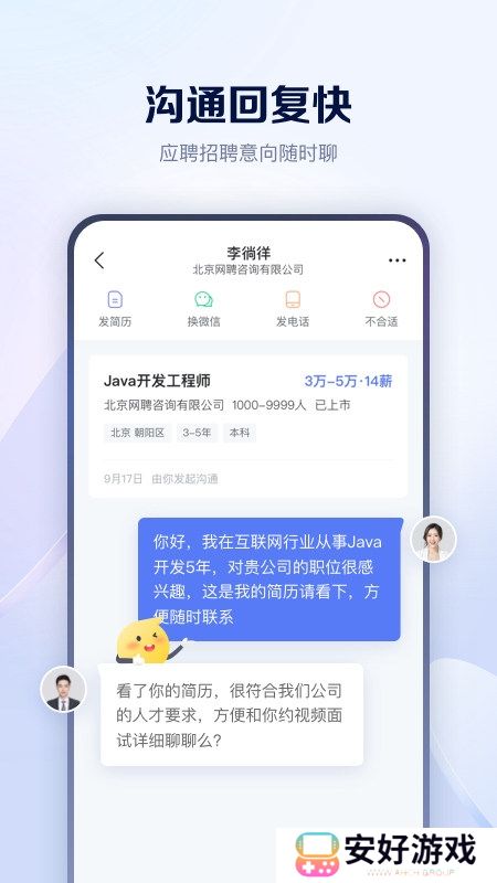 沟通回复快——求职有问在线实时沟通