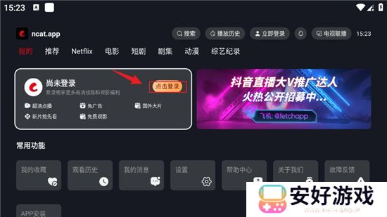 网飞猫如何登录账号1、进入网飞猫APP主界面,首页上会有点击登录按钮;