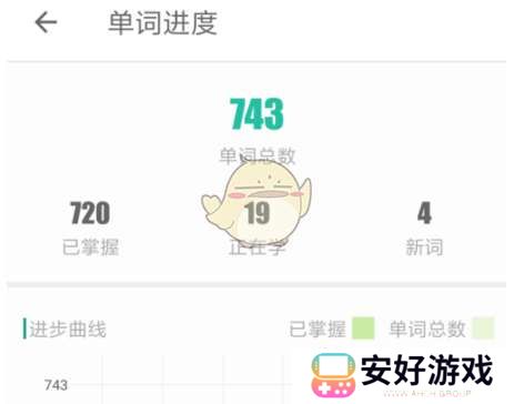 3、在单词进度的页面中,可以看到自己学过的单词总数量