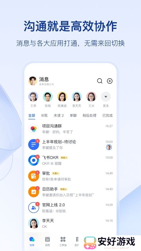 一站式无缝办公协作,团队上下对齐目标,全面激活组织和个人。飞书,定义先进团队的工作方式。