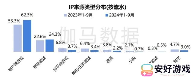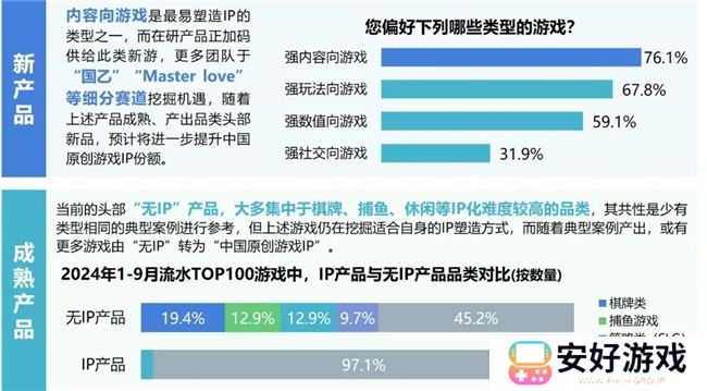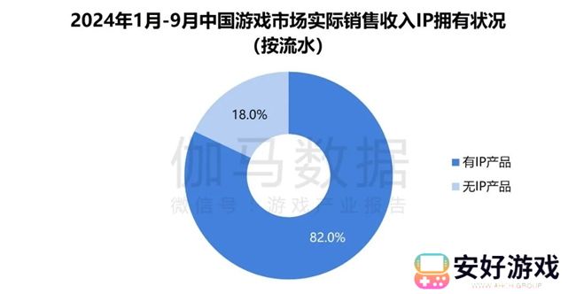 在一系列IP与产品的合力下,IP产品已经为游戏市场的核心构成,2024年1—9月中国游戏市场实际销售收入中82%的流水来源于IP产品。
