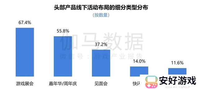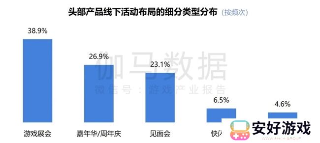 游戏展会受重视,展示、交流是重点在线下活动各种细分类型中,游戏展会是企业IP运营的重要方式,从数据来看也均是调研产品布局数量、频次最高的形态。