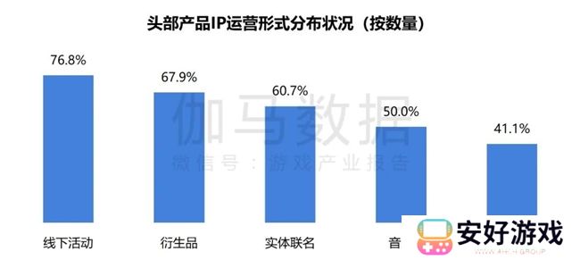 如上所述,更多用户关注游戏之外的IP价值提升,而在多元化的提升形式中,本次报告重点研究“线下活动”“实体联名”“衍生品”“音乐” 4种形式,上述运营形式正逐渐趋于常态化,头部产品中均有50%及以上布局。