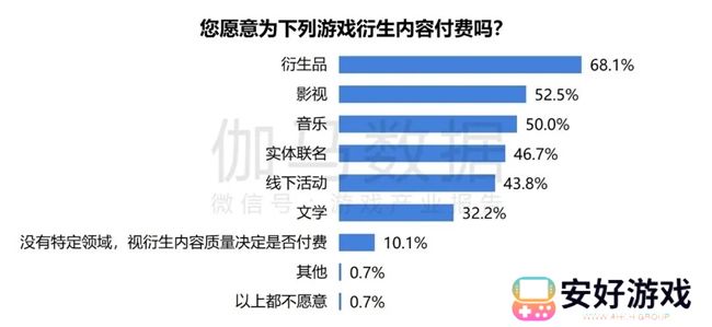 注1:以上数据只统计布局了衍生品的游戏产品。注2:虚拟衍生品指仅以数字形态存在的衍生品,如表情包、壁纸、电子红包皮肤、数字藏品以及其他同人作品等。