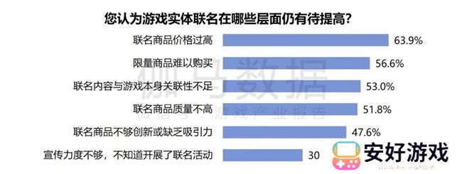 从有待改进的方面来看,“价格”是用户关注的重点:超6成用户认为联名商品价格过高。虽然联名商品的专属设计、推广等相关费用增加了联名产品的成本,但企业仍需关注“用户对价格愈发敏感”的趋势,并根据IP调性谨慎选择应对策略。