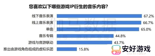 值得注意的是,研究结果显示游戏音乐在价值更为广泛的基础上,还具备“相对蓝海”的特征:深入布局游戏音乐的企业仍属少数,且超50%的用户期待接触多元的音乐内容。未来,游戏音乐或成企业提升IP价值的重要切入口。