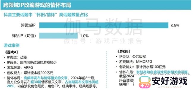高频活动、强化品质、注重维权、整合IP带动业务发展本年度,盛趣游戏的IP业务出现了显著增长,代表性IP“传奇”上半年相关综合收入同比增幅约 80%。伽马数据认为,IP业务的增长与盛趣游戏更高频地开展IP活动、强化IP产品品质、注重IP维权、进一步整合IP关联较密。高频开展IP活动主要体现为,2024年企业旗下“永恒之塔”“血族”“冒险岛”等多个IP开展活动,涉及衍生品、实体联名、线下活动等形式。强化IP产品品质上,2024年“传奇”IP上线“新百区”,助推《热血传奇》系列端游活跃用户一度同比增长81.6%、收入也同比增长108.1%;“龙之谷”IP也取得了怀旧服首周收入同比增长88%、《龙之谷世界》测试留存近80%的表现,一定程度代表用户认可其品质;注重IP维权上,企业持续打击衍生品等侵权行为,并通过参与行业版权活动等方式强化维权能力;整合IP上,“传奇”IP已获得中国大陆的完整独占权,且持续推进授权、发行、研发环节的整合,并强化与产业链头部企业的合作。