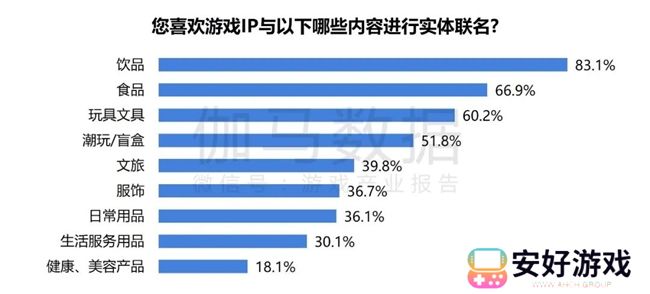 偏好的联名对象也可佐证这一成因:游戏实体联名的细分类别中,餐饮类用户偏好度较高,饮品类占比甚至达到83.1%,而这与饮品类产品门店多、用户触达范围广有关。