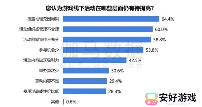 原因上,一方面,游戏展会可作为行业内规模较大的专业**流平台;另一方面,除业内企业外,展会也是企业与用户间的沟通平台。“交流互动”是线下活动特色优势整体上,游戏举办线下活动的运营方式用户关注度较高,多数线下活动细分形态均有接近50%用户选择,这一占比显著高于此次研究的其他细分运营形态,用户对此类活动的偏好较强。其中角色扮演类(Cosplay)活动用户偏好显著,这也与游戏展会等活动与二次元游戏关联度较高有关。