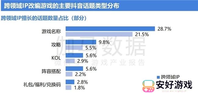 注:“主要抖音话题”指累计播放量TOP10的抖音话题。抖音话题之外,多项监测数据反映出了相同的趋势,例如在官方账号数量、发布作品数量等利好用户数量的指标上,跨领域IP改编的游戏同样表现较弱。未来,跨领域IP改编游戏或可重点关注上述指标。