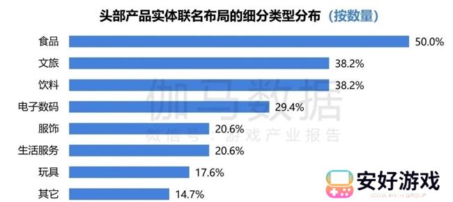 近年来,通过IP授权合作进行跨行业实体联名的运营形式逐步兴起,产品种类覆盖范围广、实用性强是联名商品的主要特点,并且联名商品在保持其原有功能属性的基础上亦可融入日常、满足用户的情绪价值,受益于以上特点,实体联名商品往往能渗透至玩家生活中的多个领域。从联名对象来看,传统行业是较多企业首选,以餐饮行业为例,食品有50%企业选择,此外,一些产业如住宿、出行等领域也正与游戏产业融合发展。