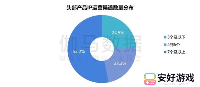 运营IP时,企业常运用多渠道同时布局的方式,伽马数据统计的9个主要运营渠道中均有较多产品布局,且同时布局7个及以上运营渠道的产品达53.2%,是企业选择布局运营渠道数量占比最高的区间。