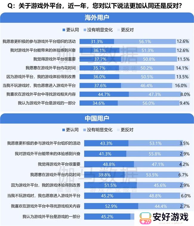 注重游戏本体之外,IP价值的提升路径也有所变化。从用户反馈来看,无论国内还是海外,越来越多的用户看重“游戏外平台”等游戏本体之外的IP布局。而对产业及企业而言,用户侧的变化意味着,单纯在游戏之内塑造IP将难以满足用户期待。未来,企业需要将游戏之外的布局视为提升IP价值的重要切入点。