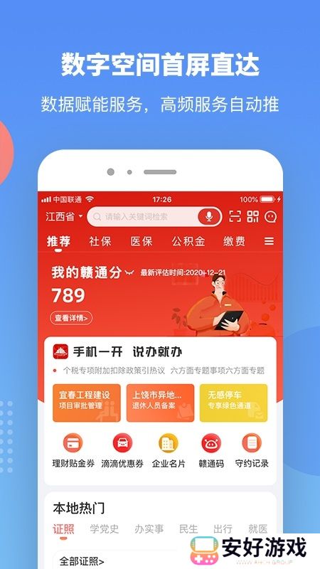 赣服通app是江西政务服务平台,赣服通app为江西市民提供医疗,教育,出行,商业等服务,用户可以在这里便捷的办理各项业务,同时还能在这里了解到最新的政务资讯,功能非常全面。