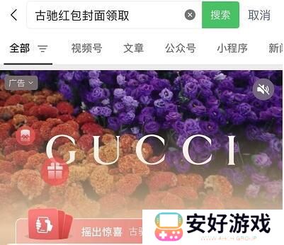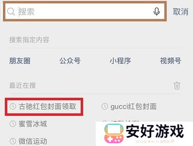 1、首先进入微信,再输入红包名,比如“古驰红包封面领取”。