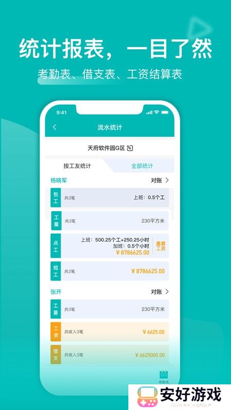 建筑工地记工记账神器手机版是一个非常好用的建筑记工天软件,能够为用户详细记录工时工天,提供考勤表、借支表、工资结算等全面详尽的统计报表,欢迎有需要的用户免费下载。