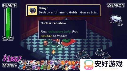 《死亡庄园》是一款画风全新的俯视角动作射击游戏,含有大量趣味肉鸽元素,玩家需要从开始弱小状态战斗积聚实力,最后挑战权利BOSS。