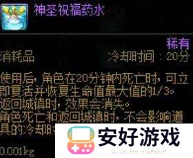 使用之后20分钟内可让角色复活1次,建议在挑战最后几个boss的时候用。