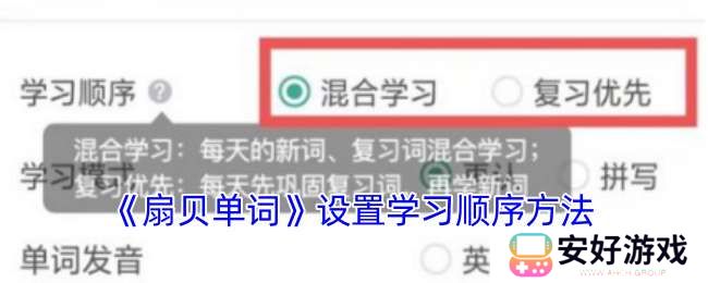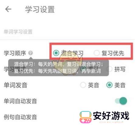 3、在学习顺序中选择“混合学习”或者“复习优先”即可。