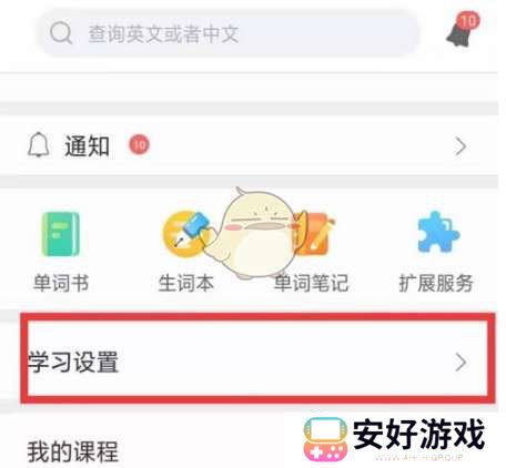 2、点击“学习设置”