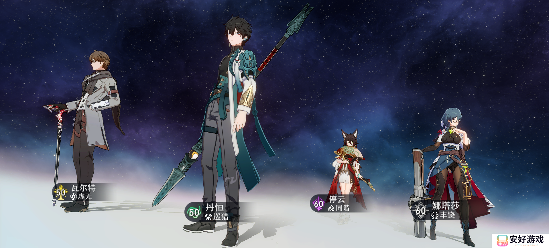 依据以上条件,我们可以选择风属性、有减速功能且对单较强的丹恒来担任输出位,功能位选择虚数属性、有控制能力和减速能力的瓦尔特,两个角色配合可以最大程度使卡夫卡的行动延后。生存位选择带有解控能力的娜塔莎,进一步提升队伍的容错率,由于丹恒和瓦尔特占用资源较多所以最后一个位置我选择了停云这名可以自给自足还可以为丹恒和瓦尔特提供正面增益的功能位角色。