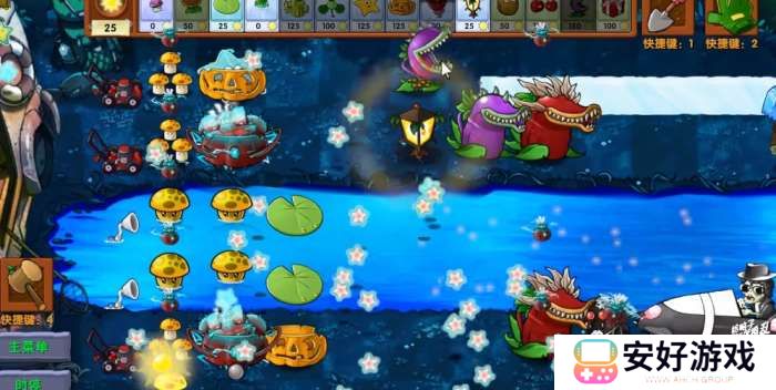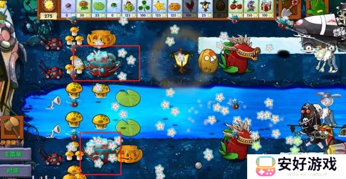 究极激光南瓜头顶上面会闪烁着小闪电,然后开始发射星星攻击僵尸。