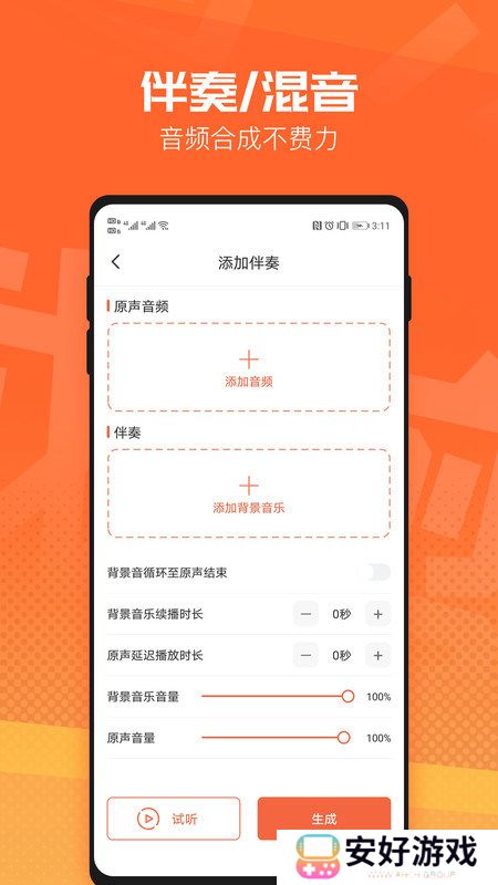 软件功能1、添加伴奏