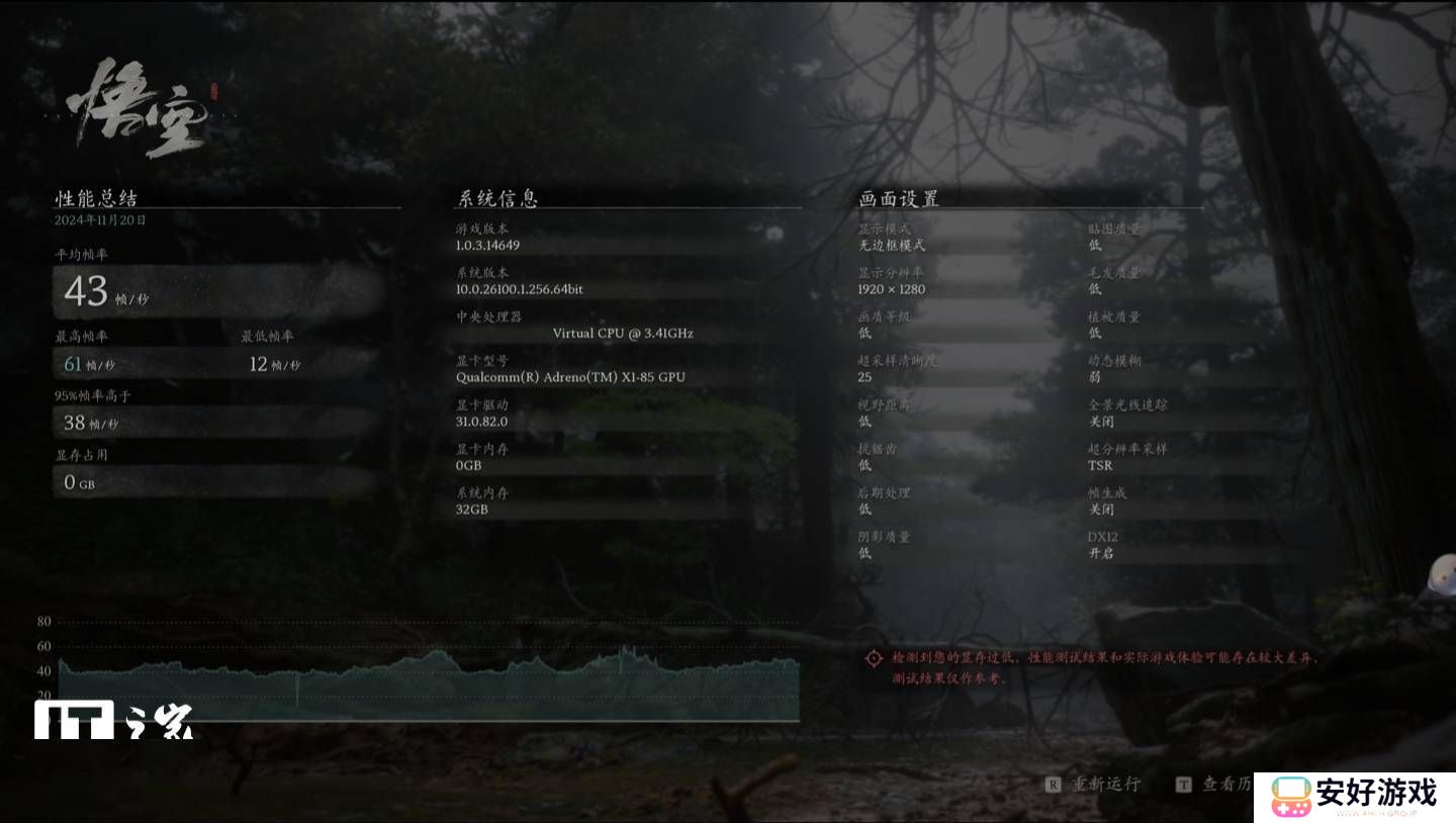 游戏方面,驱动更新带来了对多款热门游戏的适配和优化。其中包括《Baldur"s Gate 博德之门》、《Strange Brigade 奇异小队》、《Black Myth: Wukong Benchmark Tool 黑神话:悟空性能测试工具》、《Ark Survival Ascended 方舟:生存进化》以及《Dying Light 2 消逝的光芒 2》等。特别是在《黑神话:悟空》中,骁龙X Elite设备在1920×1280分辨率、低画质设置下,平均帧率达到了43帧/秒,95%的帧率高于38帧/秒,展现了出色的游戏性能。