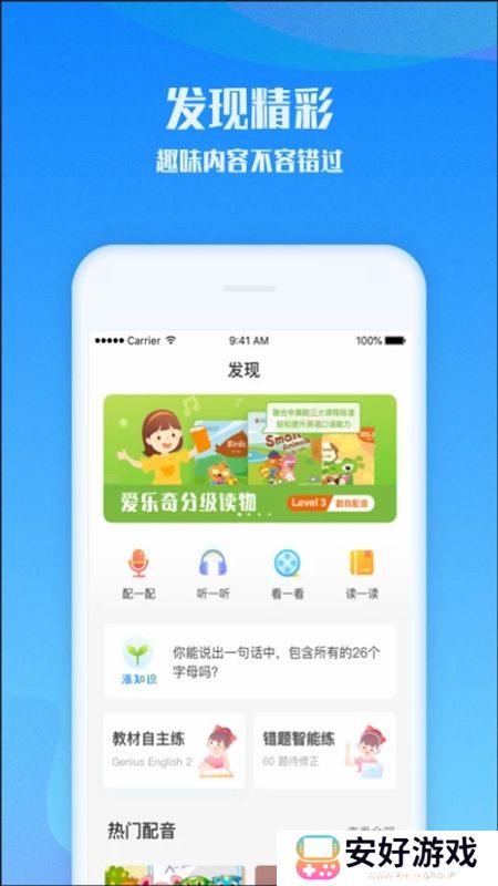 爱乐奇官方最新版是一款能够满足3至18岁的英语学习,与现行公立学校30余套英语教材及课外主流培训教材完全配套。一站式的教学服务,让孩子开口说英语不是难事,欢迎下载体验吧!