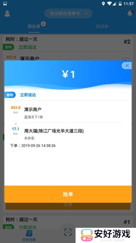 软件亮点1、一键发订单入配送池,配送员抢单分单