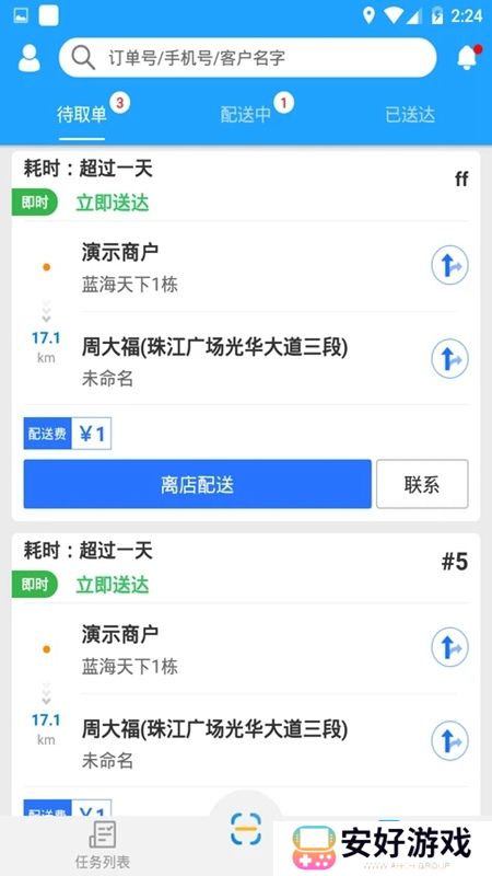 软件功能1.全部送单版块新增了送单状态、搜索电话、送单列表;