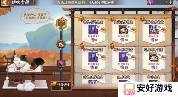 1、使用魂玉购买不同类型的食盒,将会给伊吹赠送对应数量的小鱼干,每条小鱼干将给伊吹增加1点饱食度。