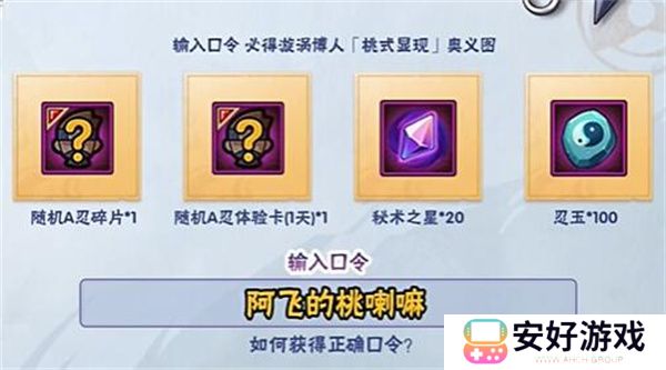 火影忍者手游桃博奥义口令分享