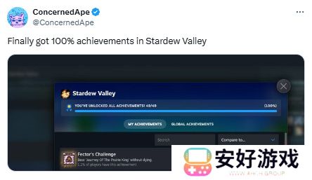 不过,要说对自己开发的游戏投入精力最多的人,还得是《星露谷物语》的制作人ConcernedApe。日前,他在社交媒体上正式宣布了自己解锁游戏全成就的消息。而距离游戏发售至今,已经过去了整整八年。