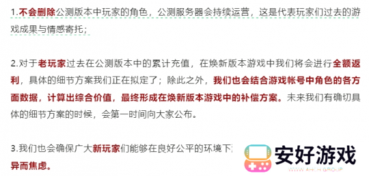 针对新版本如何补偿玩家、旧角色继承等老玩家关注的问题,《射雕》也给出了“全额返”“不会删除公测数据”“确保新玩家公平”等三大承诺,尽可能做到“焕新江湖,一个都不能少”。