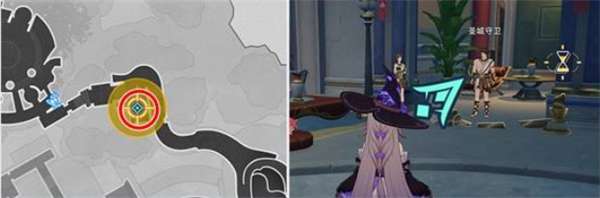 任务开始后,追踪任务并前往下图中的第1和第2任务点,分别与NPC对话。