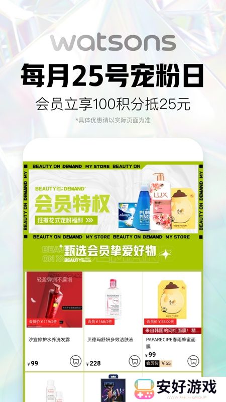 屈臣氏中国app是屈臣氏官方商城app手机客户端,继承屈臣氏百年品牌信誉,为用户提供上门送货服务,优选附近商家发货,让用户告别等待,为用户送上多种福利,注册立刻可获得超值好礼,免费下载安装吧!