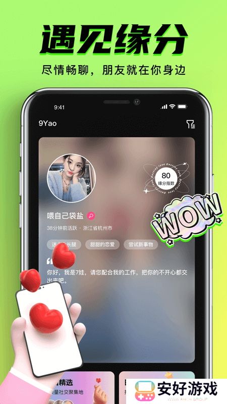 九幺软件免费版是一款专为寻找真爱的你而设计的高品质交友平台。在这里,你可以结识到志同道合的朋友,拓展自己的社交圈子,还能找到那个与你心心相印的另一半,免费下载安装吧!