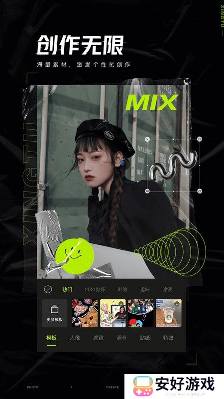 2、新潮玩法,数十种潮流风格原创素材,随心组合。