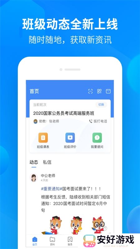 中公开学app官方手机版是中公教育专为旗下的学员和辅导教师打造的手机课堂应用软件,学生用户可通过本软件随时随地进行线上学习培训、高效备考,教师用户可以通过本软件在线为学员进行线上辅导,及时帮助学员查漏补缺,攻克学习难关。